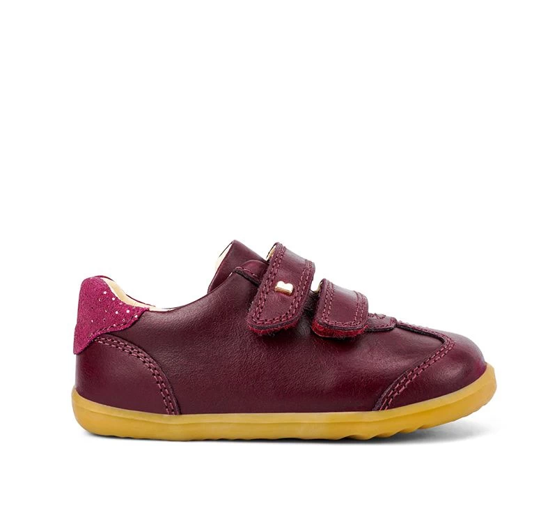 | Features | On the Bobux Step Up Sole which is zero drop thin, flexible and lightweight. Premium leather upper. Anatomically correct last to give little feet the room they need. Secure fit with double velcro closure Padded heel collar for comfort. Synthetic rubber (TPR) sole unit. |