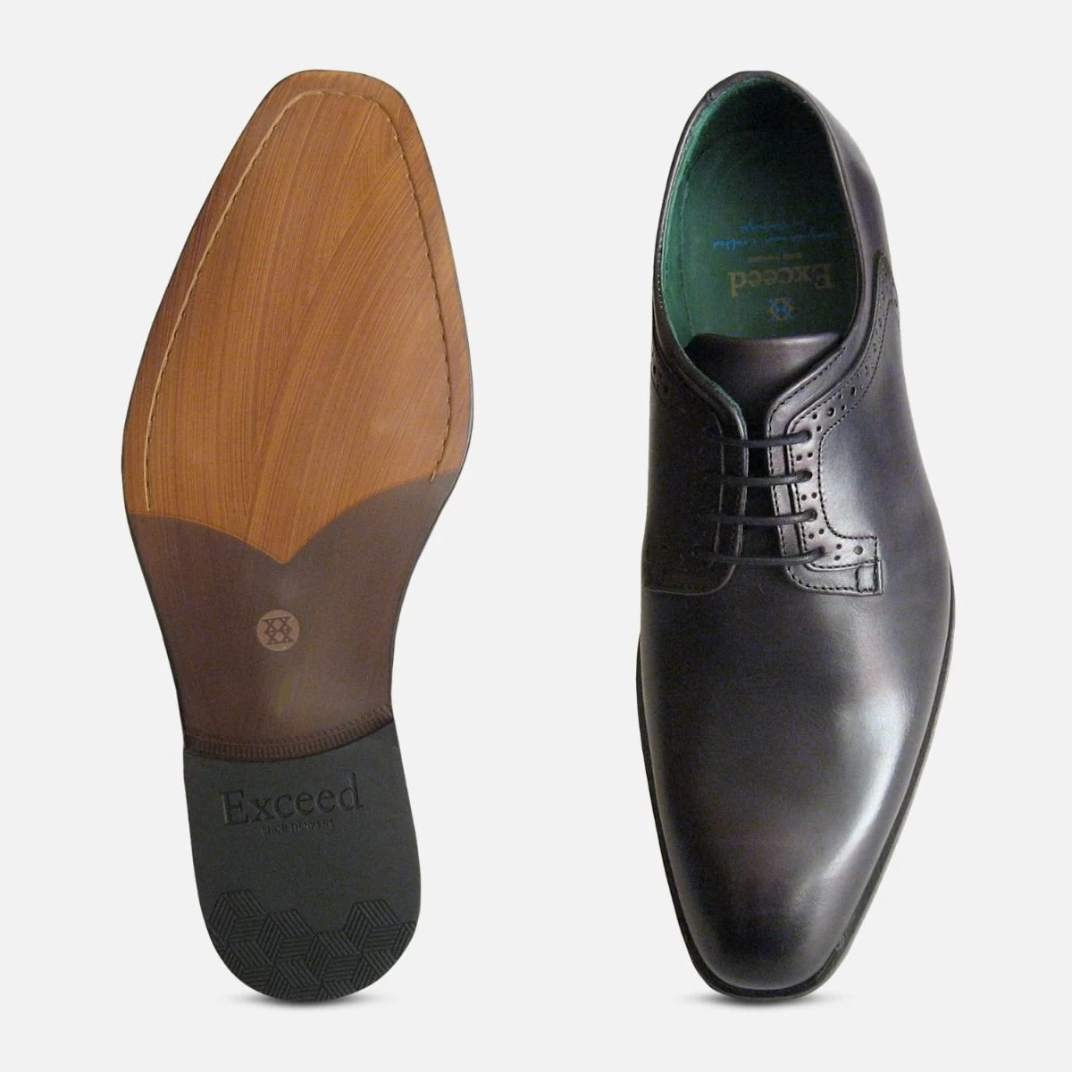 Luxurious supple dark grey leather lace up shoe with plain toe by Exceed Footwear. This exclusive style to Arthur Knight features turned seam toplines, brogued facings & stitched hand finished resin sole.